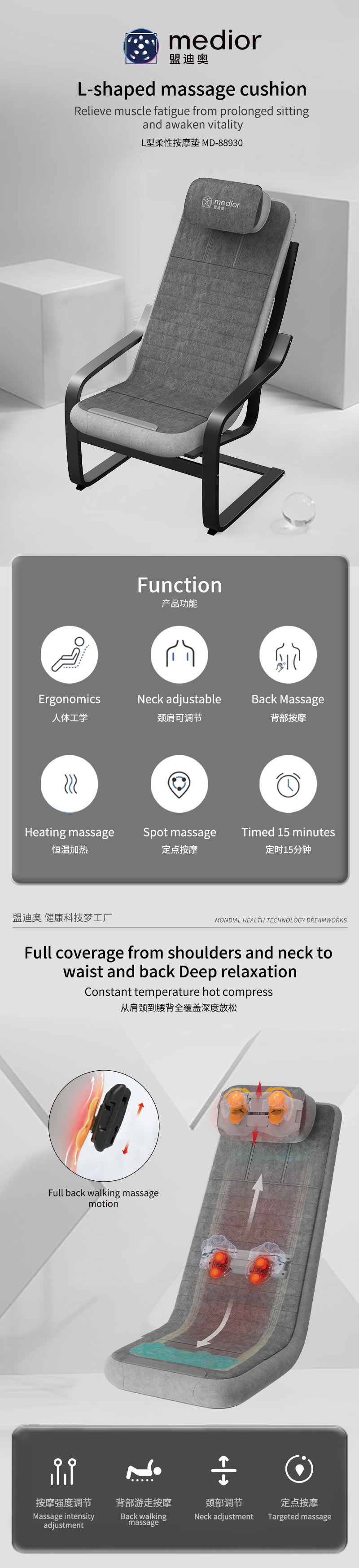 3、力度三檔調(diào)節(jié),定點(diǎn)按摩,腰背按摩、臀腿按摩、全背按摩模式選擇